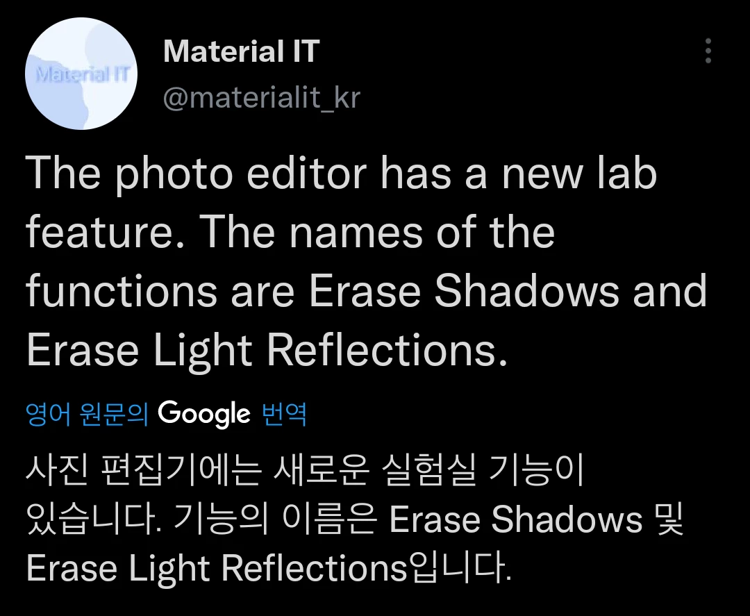 Erase Shadows 및 Erase Light Relfections 새로운 기능 지원