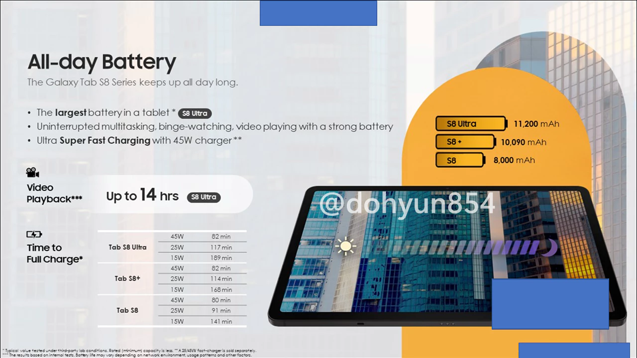 갤럭시탭 S8 시리즈 스페 시트 유출