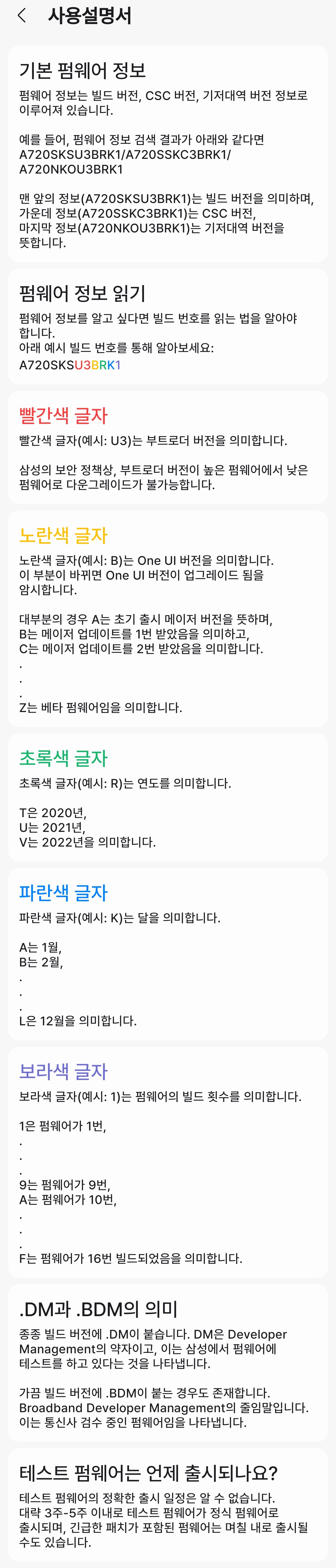 알파벳은 초기 출시 펌웨어가 A였다면 다음 OneUI 버전 업그레이드 업데이트 시 B로 올라갑니다.