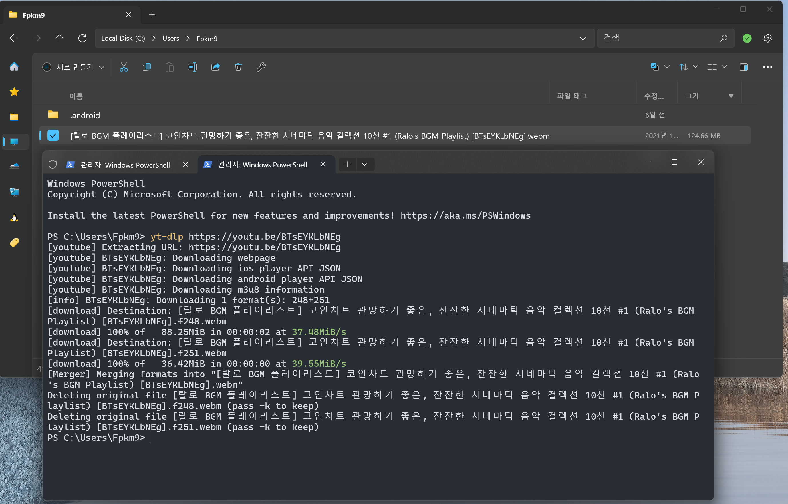 저장 하고 싶은 볼더를 cd 명령어로 이동을 하거나 원하는 폴더에서 우클릭 -> cmd로 열기 등으로 yt-dlp 영상 주소를 치면