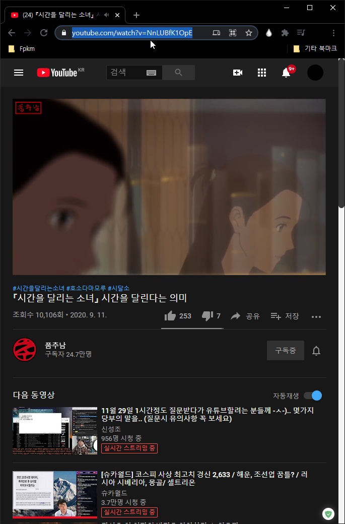 이제 다운로드 하고 싶은 유튜브영상으로 들어가자.